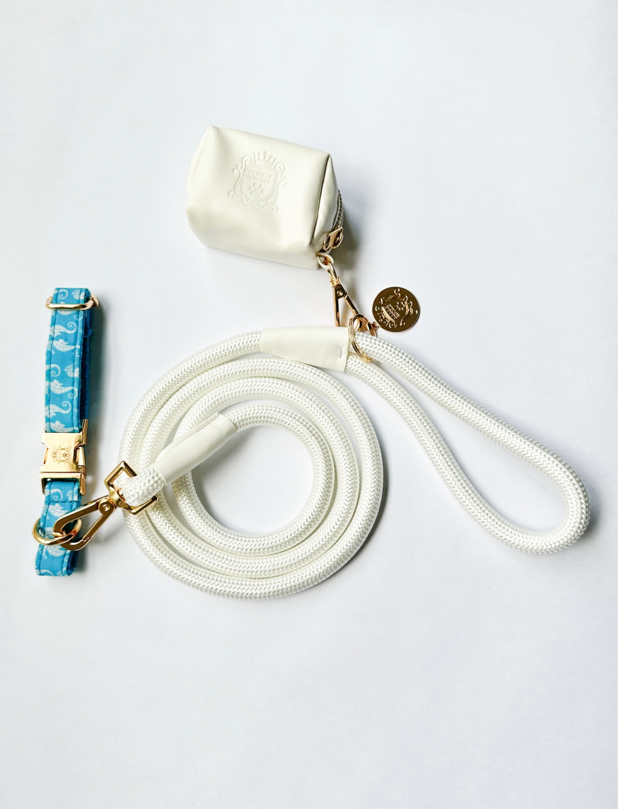The Snow Maui Set is elegant enough for special occasions yet durable and comfortable for everyday adventures. Designed with premium materials, this set includes a collar, leash (Regular or Lite), and waste bag holder, making it the perfect all-in-one walking essential for your pup.